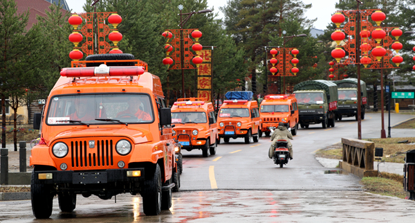 在漠河市城區(qū)主要街道,由防火指揮車、防火宣傳車、防火運兵車等33臺車輛組成的反思巡游車隊,長鳴防火警報,繞市區(qū)緩慢行駛,通過聲勢浩大的宣傳,警醒廣大居民群眾以史為鑒,深刻反思“五?六”火災帶來的慘痛教訓,讓森林防火時刻深入人心,嚴防森林火災發(fā)生。在漠河市區(qū)開展巡游活動的同時,各鎮(zhèn)也同步組織開展了規(guī)模不同的“五·六”反思警示教育活動。