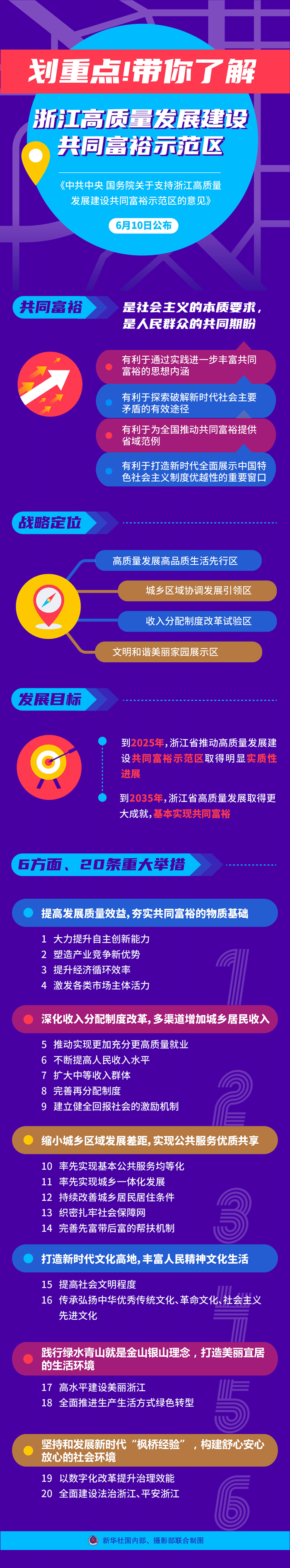 《中共中央 國務(wù)院關(guān)于支持浙江高質(zhì)量發(fā)展建設(shè)共同富裕示范區(qū)的意見》10日發(fā)布。共同富裕示范區(qū)有哪些亮點?提出了哪些重大任務(wù)?如何讓共同富??吹靡?/span>、摸得著、真實可感?打開這張圖,帶你了解浙江高質(zhì)量發(fā)展建設(shè)共同富裕示范區(qū)。(新華社記者謝?,?安蓓 制圖 陳為)