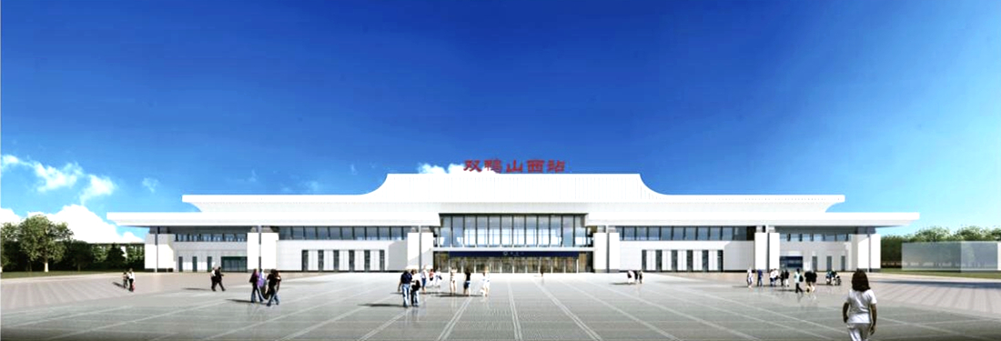 雙鴨山西站建筑面積9997.9平方米,設(shè)2條正線,3條到發(fā)線。以“農(nóng)林盛地,昂揚煤城,融匯文脈,合于自然”為設(shè)計理念。建筑形體通過極強的橫向?qū)哟?,呈現(xiàn)向中心聚集的趨勢,中心高兩側(cè)低類似于山脈的建筑天際線與橫向線條結(jié)合給人以綿延不絕的感覺,寓意城市文化及歷史如山如水般源遠(yuǎn)流長。建筑整體造型著重體現(xiàn)雙鴨山市的煤城特色和豐富的農(nóng)林資源,其煤炭相關(guān)產(chǎn)業(yè)一直作為城市建設(shè)發(fā)展的重要支柱,建筑主立面采用四根厚重有力的支撐柱,以表現(xiàn)這一理念,同時深入挖掘并體現(xiàn)雙鴨山市特有的文脈及自然特色。