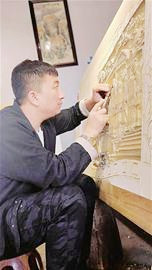 1986年出生的李寶峰,是黑龍江省非物質文化遺產(chǎn)保護項目——北安木雕第四代傳承人,他的作品多次獲得省內各類木雕作品大賽獎項。出生于雕刻世家的他,從小和父親學習木雕技藝。