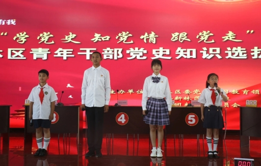 在比賽前,黨員代表帶領(lǐng)青年黨員重溫了入黨誓詞,團員代表帶領(lǐng)團員重溫了入團誓詞,新林一小少先隊員代表、新林二中團員代表為建黨100周年獻詞。