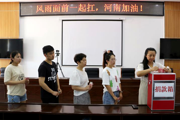 7月23日上午,捐款儀式在辦公樓五樓會(huì)議室舉行,干部職工紛紛慷慨解囊,50元、100元、200元……一份份愛心在這里匯聚傳遞。災(zāi)害無情,人有情,參加捐款的干部職工一起在“風(fēng)雨面前一起扛,河南加油!”的條幅上簽名,表達(dá)自己的心情,為河南人民加油打氣。目前,捐款款項(xiàng)已匯至紅十字會(huì)。