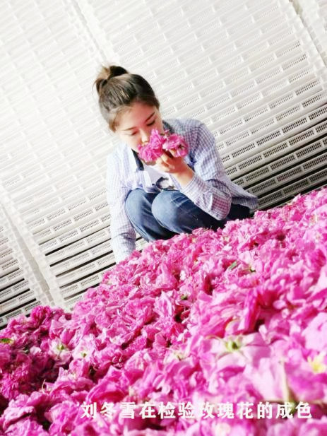 今年32歲的劉冬雪,從小就看著外公王占龍帶領(lǐng)父親及家人試種玫瑰花,剛開始種植品種單一,種植面積小,玫瑰產(chǎn)量低。2009年,正在讀高中的劉冬雪,在外公和父親的影響下,加入到玫瑰花種植工作中,幫助老輩管理生產(chǎn)、銷路、產(chǎn)品創(chuàng)新等多個(gè)環(huán)節(jié)。劉冬雪有文化、肯專研,女孩子對(duì)玫瑰花更是情有獨(dú)鐘,父輩一商量將合作社經(jīng)理的重?fù)?dān)就交給了她。劉冬雪深知近年隨著玫瑰面積和產(chǎn)量的不斷提高,他們還是家庭小作坊模式,“單打獨(dú)斗”地跑市場(chǎng),只能是小打小鬧。為此,她跑市場(chǎng)、找銷路、先后到云南、山東等地考察,了解鮮花生產(chǎn)和銷售。并函授學(xué)習(xí)了林農(nóng)大專課程,不斷更新鮮花品種,提升鮮花品質(zhì),逐步打開了鮮花銷路。劉冬雪也深入思考,只賣原材料經(jīng)受不了市場(chǎng)的考驗(yàn),她夢(mèng)想建一個(gè)玫瑰花深加工企業(yè),但是,因缺少資金遲遲沒有實(shí)現(xiàn)心中的愿望。
