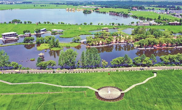 隱藏在綠水田中的大慶市林甸縣四合鄉(xiāng)聯(lián)合村,是一幅移步換景的畫卷,廣闊無(wú)垠的草原,鮮花、野草點(diǎn)綴其間,繪就出這里獨(dú)具個(gè)性魅力的濕地原生態(tài)景觀。采摘、騎車、釣魚,或閉上眼睛靜聽四周的鳥鳴聲、田邊的流水聲以及青禾的搖曳聲,放松又解壓。