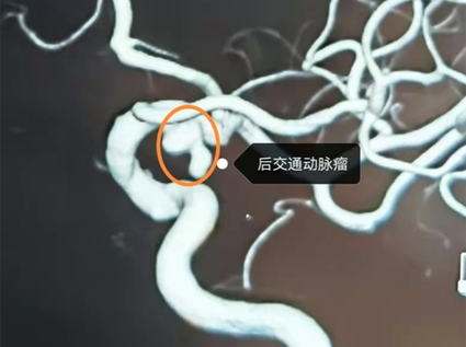 據(jù)省醫(yī)院神經(jīng)外一科孫國(guó)章副主任介紹,張大娘是一位聾啞人,今年69歲,在臨近中秋節(jié)的時(shí)候突然出現(xiàn)不明原因的輕微頭痛,當(dāng)時(shí)家屬并未太過(guò)在意,但是三四天之后,張大娘就出現(xiàn)了右側(cè)眼睛睜不開(kāi)的癥狀,家人這才領(lǐng)著張大娘前往黑龍江省醫(yī)院就診。張大娘入院時(shí),已經(jīng)有頭痛、眼瞼上提障礙等表現(xiàn),很有可能是后交通動(dòng)脈瘤導(dǎo)致,隨即給予張大娘完善了頭部CT平掃及CTA血管檢查。果然,頭部CTA檢查明確顯示右側(cè)頸內(nèi)動(dòng)脈-后交通段有動(dòng)脈瘤樣異常凸起,動(dòng)脈瘤導(dǎo)致相鄰的動(dòng)眼神經(jīng)受壓,引發(fā)動(dòng)眼神經(jīng)麻痹,才讓張大娘出現(xiàn)了眼睛不能睜開(kāi)的癥狀。