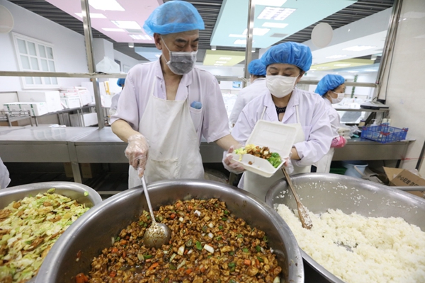 消化內(nèi)科16個(gè)月大的患兒浩浩是過敏體質(zhì),因發(fā)熱、腹瀉、進(jìn)食后嘔吐住院治療,這個(gè)孩子既往過敏原檢查對(duì)大米、西紅柿、雞蛋等多種食物過敏,所以食堂針對(duì)這個(gè)孩子飲食單獨(dú)配餐,主食以小麥類饅頭等為主,蔬菜以在家經(jīng)常食用的菜類制作,保證患兒的營養(yǎng)進(jìn)食。據(jù)了解,哈爾濱醫(yī)科大學(xué)附屬哈爾濱兒童醫(yī)院全力保障300多名住院患兒以及陪護(hù)家屬的一日三餐飲食。每天患兒家長通過住院患者訂餐系統(tǒng)平臺(tái)網(wǎng)上自助訂餐,食堂配餐送到病房。鞠樹斌介紹,食堂每天負(fù)責(zé)醫(yī)院職工和患者及陪護(hù)家屬800多人次的一日三餐,在崗的25名工作人員,每天從3時(shí)開始準(zhǔn)備早餐,8時(shí)制作午餐,14時(shí)又開始做晚餐。工作雖然忙碌,但卻覺得自己的努力能讓患者們?cè)谧≡浩陂g吃得安心、舒心,又覺得自己價(jià)值感滿滿。