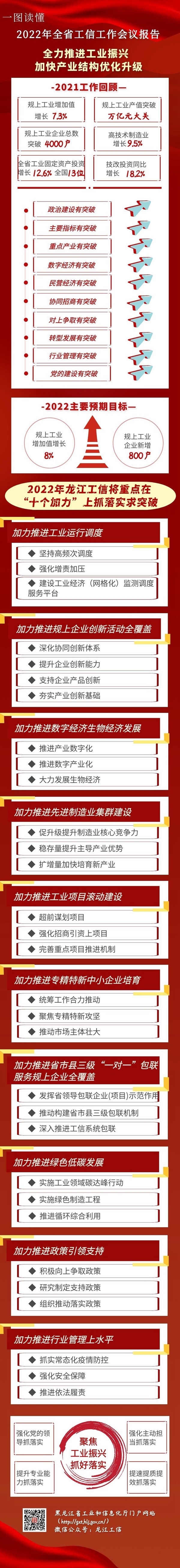會(huì)議強(qiáng)調(diào),新的一年,要堅(jiān)持以習(xí)近平新時(shí)代中國特色社會(huì)主義思想為指導(dǎo),全面貫徹落實(shí)黨的十九大和十九屆歷次全會(huì)精神,深入貫徹落實(shí)習(xí)近平總書記重要講話重要指示批示精神,按照黨中央“提升制造業(yè)核心競(jìng)爭(zhēng)力”和省委“要把振興工業(yè)擺上突出位置”的部署要求,完整、準(zhǔn)確、全面貫徹新發(fā)展理念,服務(wù)和融入構(gòu)建新發(fā)展格局,推動(dòng)高質(zhì)量發(fā)展,堅(jiān)持思想思路破題、科學(xué)規(guī)劃引領(lǐng)、配套政策跟進(jìn)、聚焦優(yōu)勢(shì)揚(yáng)長(zhǎng)、激發(fā)活力補(bǔ)短,“穩(wěn)”字當(dāng)頭、“進(jìn)”字發(fā)力,全力實(shí)施工業(yè)振興計(jì)劃,以發(fā)展壯大數(shù)字經(jīng)濟(jì)、生物經(jīng)濟(jì)等戰(zhàn)略性新興產(chǎn)業(yè)為引領(lǐng),“十個(gè)加力”穩(wěn)存量擴(kuò)增量,鞏固實(shí)體經(jīng)濟(jì)根基,做強(qiáng)先進(jìn)制造業(yè),做優(yōu)現(xiàn)代產(chǎn)業(yè)體系,推動(dòng)工業(yè)經(jīng)濟(jì)實(shí)現(xiàn)質(zhì)的穩(wěn)步提升和量的合理增長(zhǎng),加快龍江工業(yè)再創(chuàng)新輝煌,以優(yōu)異成績(jī)迎接黨的二十大勝利召開。