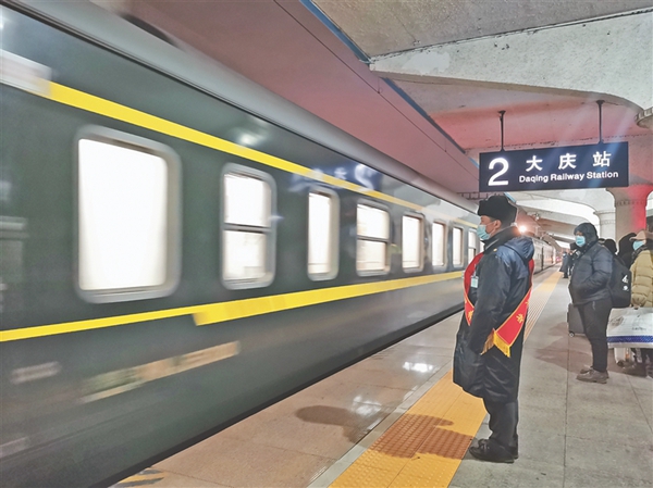 由于節(jié)后返程客流劇增,大慶地區(qū)去往海拉爾的4趟旅客列車無法滿足企業(yè)返崗需要,為幫助企業(yè)解決油田職工返崗復(fù)工困難,哈爾濱局集團(tuán)公司全力協(xié)助大慶油田有限責(zé)任公司辦理職工出行事宜,為企業(yè)量身定制了油田職工返崗復(fù)工專列開行方案。在春運(yùn)期間運(yùn)力緊張的情況下,專門調(diào)集10輛空調(diào)車體,全面進(jìn)行設(shè)備檢修維護(hù)和車輛消毒作業(yè),滿足石油工人出行需求。負(fù)責(zé)運(yùn)輸組織工作的大慶站為油田職工提供專項(xiàng)聯(lián)絡(luò)、專區(qū)候車、專人引導(dǎo)服務(wù),及時(shí)辦理團(tuán)體購票,增開進(jìn)站通道,提前做好候車區(qū)域通風(fēng)、消毒和保潔工作,配合地方政府嚴(yán)格落實(shí)進(jìn)站掃碼、測溫等防疫措施,在驗(yàn)票進(jìn)站、安檢、候車、乘車等環(huán)節(jié)設(shè)置人員進(jìn)行引導(dǎo)。并利用小喇叭、電子顯示屏、車站廣播等載體,循環(huán)播放疫情防控措施、登乘列車注意事項(xiàng),引導(dǎo)務(wù)工人員分散候車就座。鐵路部門精心抽調(diào)服務(wù)經(jīng)驗(yàn)豐富的哈爾濱客運(yùn)段北京車隊(duì)列車工作人員負(fù)責(zé)乘務(wù)工作,提前做好列車通風(fēng)消毒和防疫保潔工作,為乘客準(zhǔn)備了一次性醫(yī)用口罩和消毒洗手液,全力營造健康安全的出行環(huán)境。