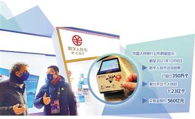 2017年起,人民銀行與商業(yè)銀行、互聯(lián)網(wǎng)公司等合作,共同進行數(shù)字人民幣研發(fā)。2019年末,數(shù)字人民幣開始試點,目前,人民銀行已經在深圳、蘇州、雄安、成都、上海、海南、長沙、西安、青島、大連等地和2022年北京冬奧會場景開展數(shù)字人民幣試點。中國人民銀行公布的數(shù)據(jù)顯示,截至2021年10月8日,數(shù)字人民幣試點場景已超過350萬個,累計開立個人錢包1.23億個,交易金額約560億元。