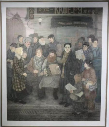 哈爾濱理工大學(xué)蔣博老師積極響應(yīng)黑龍江省“重大歷史題材”美術(shù)創(chuàng)作工程,與愛人吳天文共同努力,攜手創(chuàng)作出了《瞿秋白·心中流淌的國際歌》這件作品。經(jīng)過初期大量的搜集歷史資料,再到草圖的繪制,最后定稿繪制完成,前后歷時(shí)近三年。這幅作品的靈感來源于1921年瞿秋白以記者的身份訪俄,在哈爾濱一個(gè)多月的滯留期間,感受到了共產(chǎn)主義的氣息,第一次聽到了由俄國人傳唱的《國際歌》。凝重的節(jié)奏與激昂的旋律催人覺醒,使人奮進(jìn)。隨后他決定將這首歌翻譯成中文,通過簡化之后的巧妙翻譯以更加通俗易懂的口吻使民眾接受而廣為傳唱。