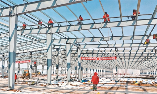 工人進(jìn)行鋼結(jié)構(gòu)安裝作業(yè)。宋燕軍 黑龍江日?qǐng)?bào)全媒體記者 姚建平攝
