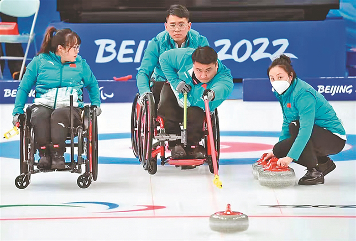 北京冬殘奧會的第一天,中國輪椅冰壺隊(duì)開局不利,先后不敵加拿大隊(duì)和瑞典隊(duì),壓力可想而知。之后中國隊(duì)迅速調(diào)整狀態(tài)。6日,9:3戰(zhàn)勝愛沙尼亞隊(duì),贏得循環(huán)賽首勝。7日,接連戰(zhàn)勝韓國隊(duì)和瑞士隊(duì),以三勝兩負(fù)的戰(zhàn)績與拉脫維亞隊(duì)并列第三名。11日,中國隊(duì)對陣加拿大隊(duì)爭奪決賽名額。12日,輪椅冰壺決賽中,中國隊(duì)在前四局1:2落后瑞典隊(duì)的情況下改變戰(zhàn)術(shù),利用對手失誤成功拿到4分。最終,中國輪椅冰壺隊(duì)8:3戰(zhàn)勝瑞典奪得冠軍。