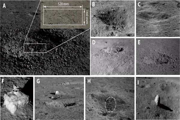 “玉兔二號”觀測發(fā)現(xiàn)的撞擊坑及巖石