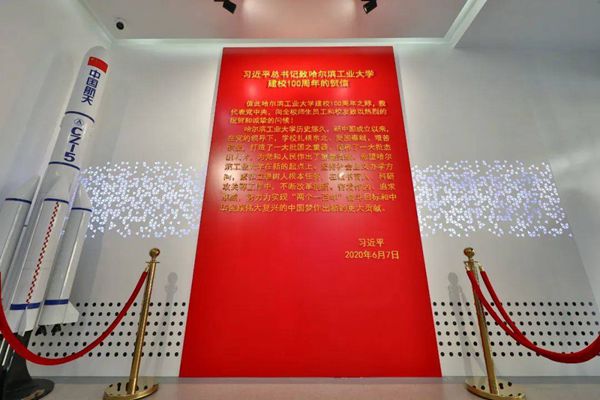 走進“哈工大中心”,首先映入眼簾的就是習近平總書記致哈工大建校100周年賀信。學(xué)校通過該中心的展示持續(xù)深入宣講宣傳習近平總書記賀信精神,以杰出人才培養(yǎng)和國之重器打造的生動故事引領(lǐng)青少年勵志成才,以航天第一?!凹獗蔽幕I(lǐng)社會文化發(fā)展。以哈工大在黨的領(lǐng)導(dǎo)下取得的歷史成就為主要內(nèi)容,創(chuàng)新策劃系列展覽展示和互動體驗,展示哈工大與中國航天同頻共振66年的發(fā)展歷史。