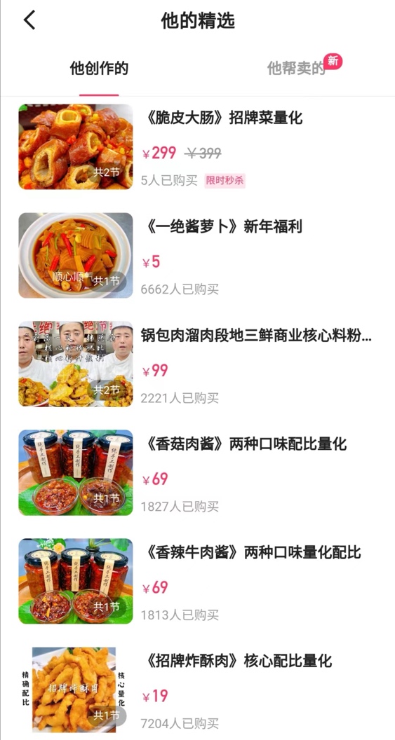作為一位有著25年美食領(lǐng)域從業(yè)經(jīng)驗(yàn)的老廚師,韓總廚憑借一手精湛的廚藝,來到快手后很快就積累了上萬粉絲,為他打造付費(fèi)課程奠定了基礎(chǔ)。“對(duì)比了其他達(dá)人的內(nèi)容,我覺得自己還是有一定的內(nèi)容優(yōu)勢(shì)的,所以也試著做了課程,看看是否有人愿意購(gòu)買。”