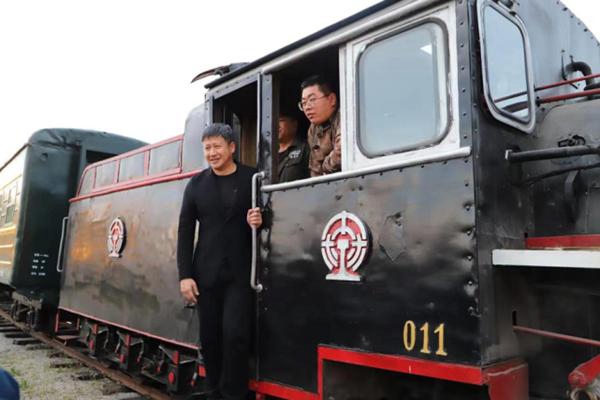 張國強在家鄉(xiāng)采風時,來到龍江森工集團樺南林業(yè)局有限公司,先后參觀了蒸汽火車展覽館、森工大院、鍛造車間,并乘坐百年森林蒸汽小火車感受林區(qū)特色風光。
