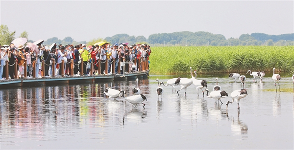 15日,第二個“鄉(xiāng)約扎龍·情滿鶴城”——“扎龍齊齊哈爾市民日”全面啟動。當日天藍水碧,徐徐微風拂過,眾多游客來到國際重要濕地之一的扎龍濕地感受濕地風光的壯闊之美,欣賞鶴舞云翔的自然之美。馬麗娟 宋燕軍 黑龍江日報全媒體記者 姚建平攝