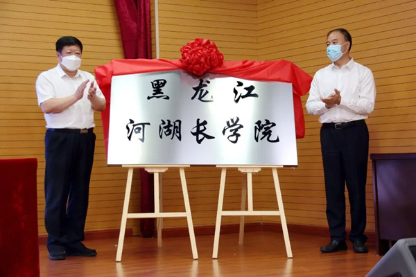 儀式上,省水利廳黨組書記、廳長、省河湖長制辦公室常務(wù)副主任侯百君和黑龍江大學(xué)校長付宏剛簽訂了共建協(xié)議,與黑龍江大學(xué)黨委書記王永清共同為黑龍江河湖長學(xué)院揭牌。