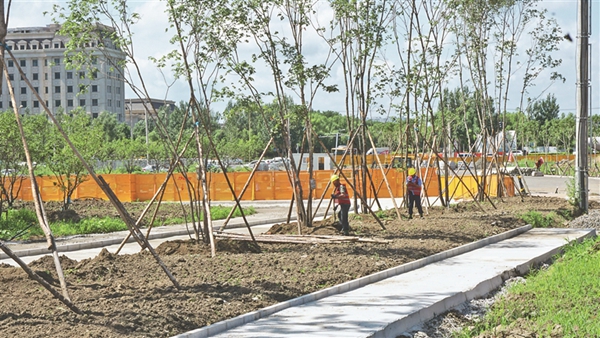 黑龍江日?qǐng)?bào)訊(王藝凝 黑龍江日?qǐng)?bào)全媒體記者薛婧 黑龍江日?qǐng)?bào)全媒體見習(xí)記者董廣碩)近日,記者在哈爾濱新區(qū)的國(guó)貿(mào)中央廣場(chǎng)項(xiàng)目(一期)建設(shè)現(xiàn)場(chǎng)看到,工人們頂著炎炎烈日運(yùn)送建筑材料、栽種路旁的各式綠植。經(jīng)過(guò)近一年的加緊施工,廣場(chǎng)已初具規(guī)模。據(jù)該項(xiàng)目負(fù)責(zé)人介紹,為盡早豐富居民的文化生活,工作人員正搶抓工期,預(yù)計(jì)比原計(jì)劃提前一年完成建設(shè),力爭(zhēng)今年年底前完工。