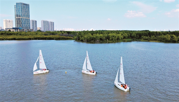 連日來,哈爾濱市職工帆船帆板運動協(xié)會的40余名隊員,在一湖三島濕地的訓練基地中進行新帆船的駕乘訓練,為相關帆船比賽做準備。黑龍江日報記者 張澍攝