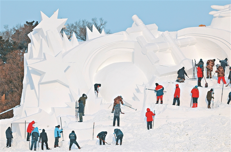 本報(bào)訊(記者 劉艷)記者從哈爾濱市太陽島風(fēng)景區(qū)獲悉,13日,第35屆哈爾濱太陽島雪博會(huì)大型主塑《逐夢》正式開鏟。主塑長100米,高33米,將由70余位雕刻師用一周左右的時(shí)間完成,用雪量近2.6萬立方米。