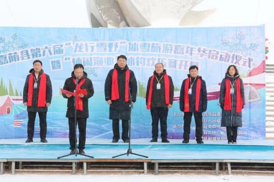 嘉蔭縣委副書記、縣長李長江代表嘉蔭縣委、縣政府為活動致辭,他說,本次活動是嘉蔭人民克服三年疫情影響,進(jìn)一步發(fā)展冰雪經(jīng)濟(jì)、展示多元文化、彰顯小城風(fēng)采的具體行動。誠邀全國各地的朋友們齊聚嘉蔭,行界江小鎮(zhèn)之旅,聽龍吟傳唱;賞龍江邊城佳景,釣鮮美江魚。