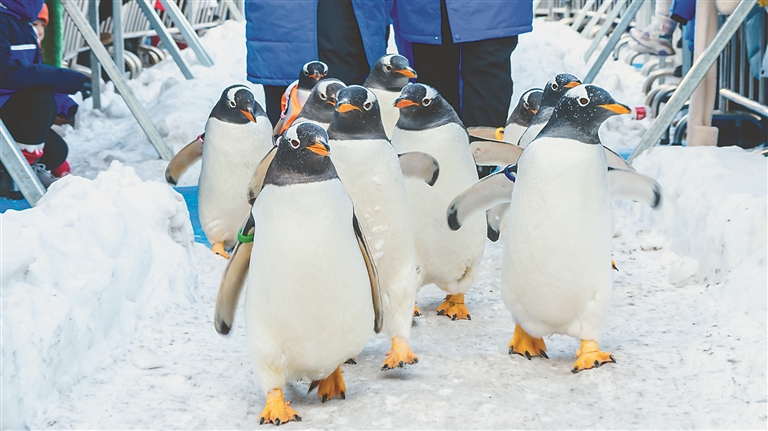“我們就是專程為‘淘學(xué)企鵝’而來,能在哈爾濱看到全國僅有的企鵝冰雪巡游,真的不虛此行?!痹缭?年前,上海游客孟蕓就通過短視頻看到它們背著小書包打卡黑龍江美景的身影,成為妥妥的“鵝粉”。她說,為了能在前排近距離觀看,她更是早早就來到極地廣場等候。哈爾濱極地公園營銷部經(jīng)理崔美艷說,“淘學(xué)企鵝冰雪巡游”自啟動以來,每日引萬人打卡,成為今冬的爆款網(wǎng)紅活動,吸引全國游客來到哈爾濱看企鵝打卡拍攝,全網(wǎng)曝光量更是在25天的時間里突破了8.5億。