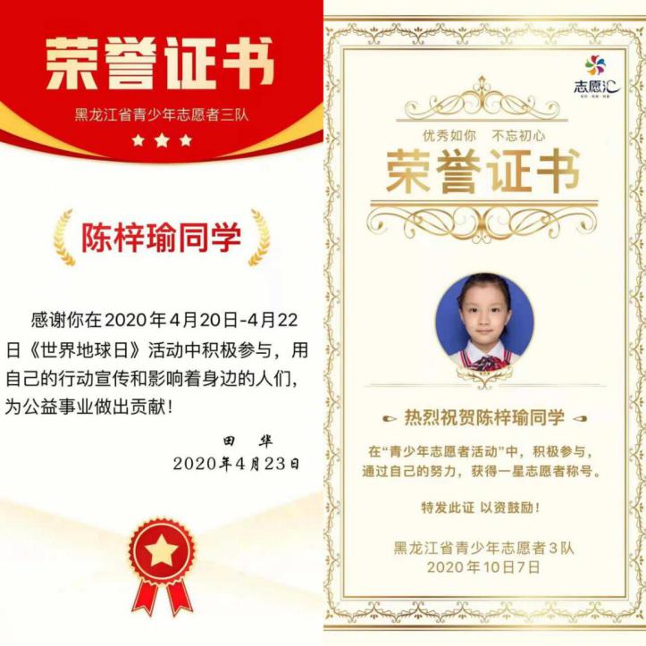 陳梓瑜同學(xué)熱衷于志愿服務(wù)活動(dòng)。連續(xù)三期參與了為貧困小學(xué)捐書志愿活動(dòng)、“美化井蓋·建文明城市”系列志愿服務(wù)、積極參與“雛雁計(jì)劃助學(xué)活動(dòng)”,她積極組織策劃了 “小小圖書管理員·你我共建”志愿活動(dòng)、“垃圾分類小衛(wèi)士”志愿活動(dòng)、幫助哈爾濱市公安局推廣“防詐騙軟件志愿活動(dòng)”。