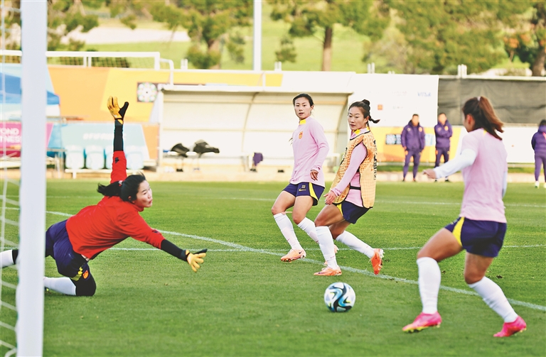 7月10日歸隊(duì)的王霜已完全融入,過障加速、接球射門,王霜彈無虛發(fā)。在6對(duì)6半場(chǎng)演練中,助理教練馬曉旭加入到王霜率領(lǐng)的黃隊(duì),與唐佳麗、張馨所在的紅隊(duì)展開對(duì)攻大戰(zhàn)。快速的攻防轉(zhuǎn)換、漂亮的進(jìn)球讓看臺(tái)上的球迷興奮不已,有球迷甚至打開了手機(jī)直播。
