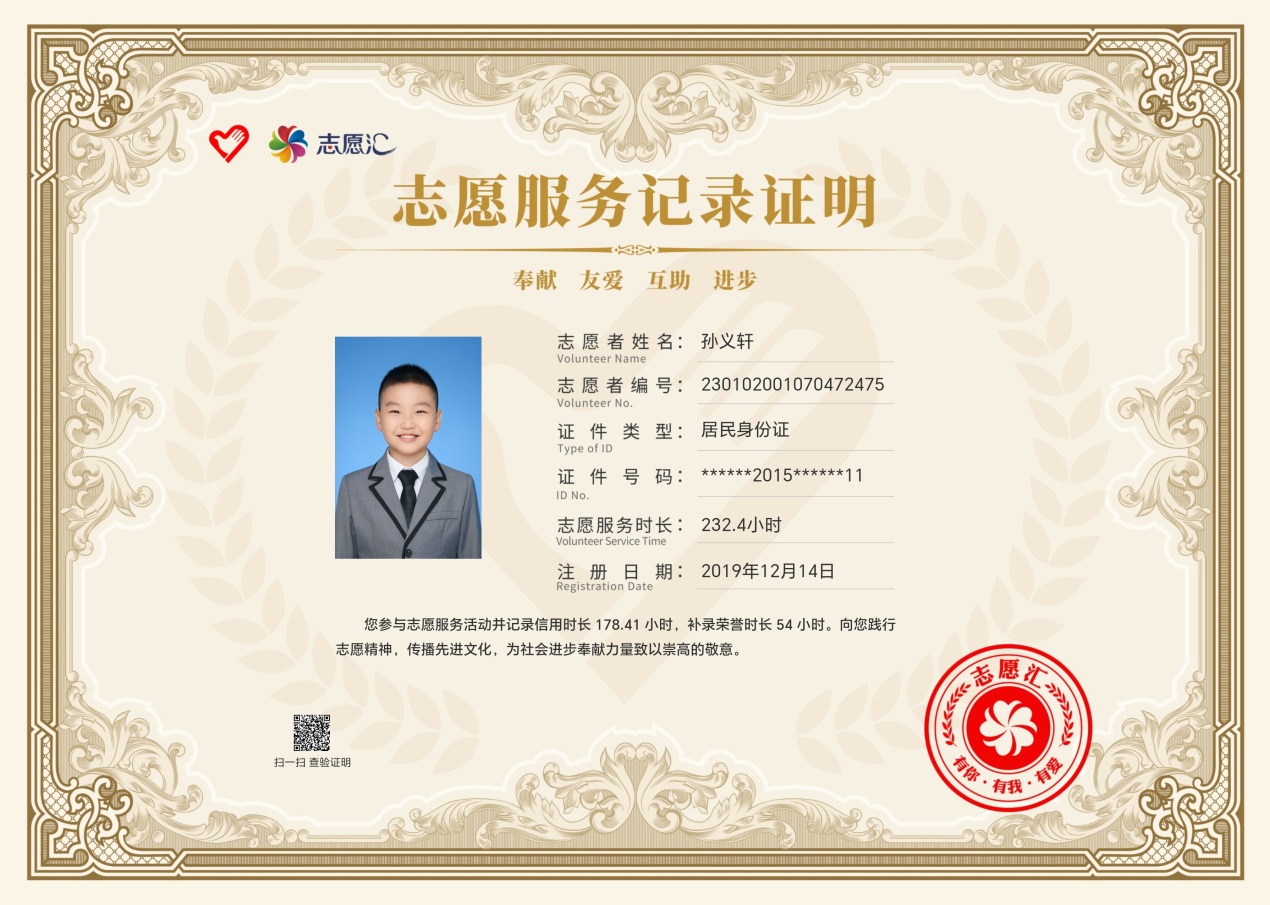 上學(xué)后的孫義軒同學(xué)更是把助人為樂當(dāng)作自己日常的志愿行動(dòng)。他一邊認(rèn)真學(xué)習(xí)文化課程,一邊通過積極參加志愿活動(dòng)提升自己。