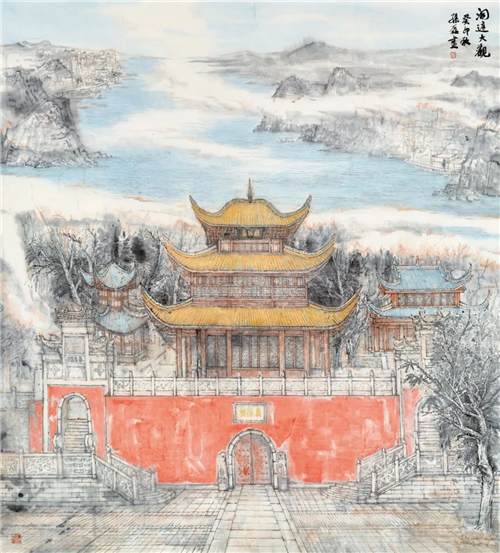朱道平 閱江樓圖 234cm×123cm 國畫