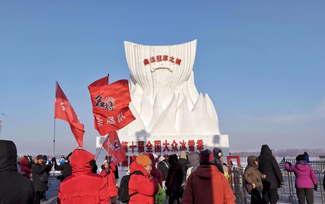 哈爾濱松花江冰雪嘉年華雪塑“奧運冠軍之城”獎杯