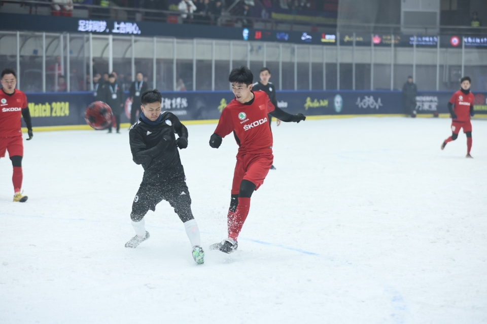 1月26日,2024上海合作組織國家雪地足球賽開幕式及揭幕戰(zhàn)在哈爾濱體育學(xué)院冰球館舉行。