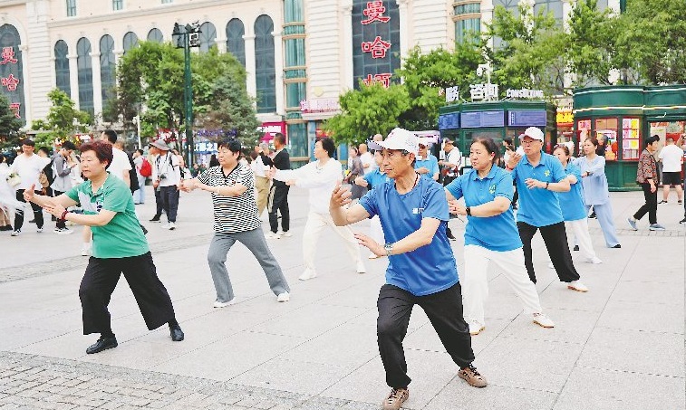 在哈爾濱建筑藝術(shù)廣場(chǎng)上,可以看到來(lái)自各地的游人正在打卡拍照,來(lái)自青島的老年旅游團(tuán)還在此打起了太極拳。據(jù)同程旅行發(fā)布的《2024暑運(yùn)出行趨勢(shì)報(bào)告》,自6月份以來(lái),哈爾濱成為這個(gè)暑期熱門(mén)避暑目的地,6月中旬開(kāi)始,黑龍江的人氣快速上升。本報(bào)記者 張澍攝