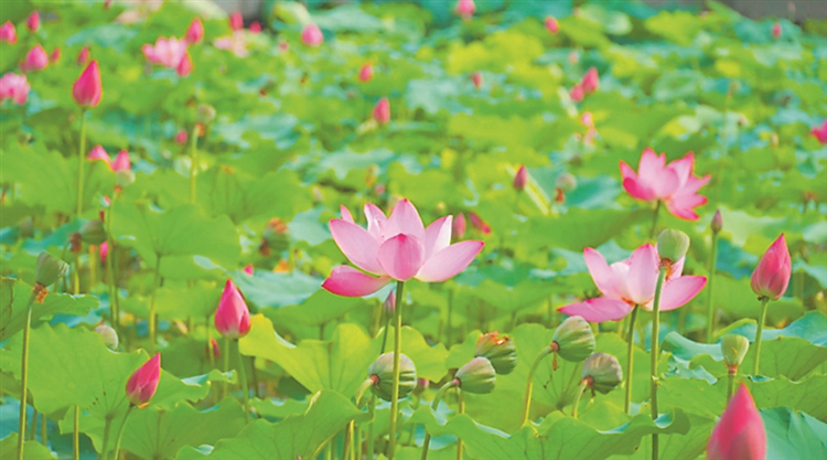 八五九農(nóng)場灌渠附近盛開的荷花。李明達(dá)攝