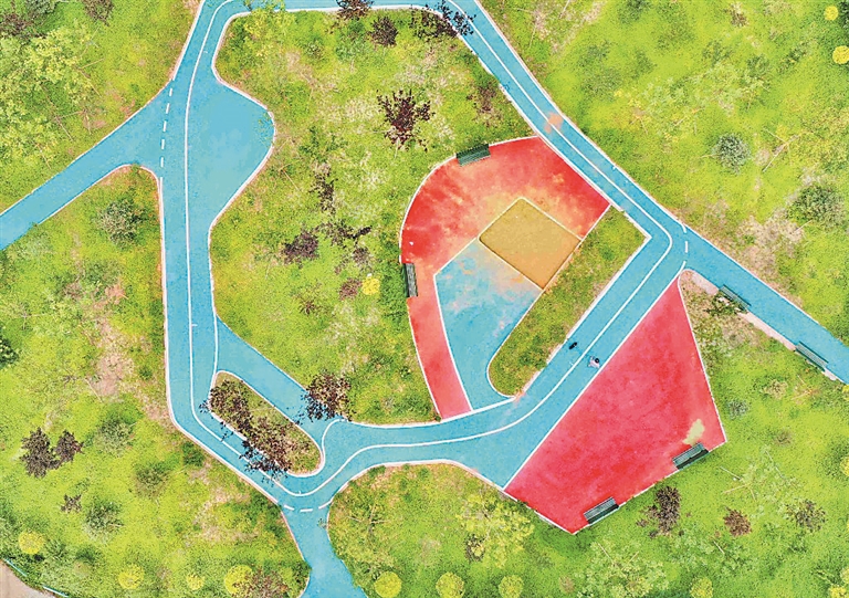 這處“口袋公園”占地面積數(shù)百平方米,里面有供人們散步聊天的休閑區(qū),有供孩子們玩樂的“微型沙灘”,花草樹木生長茂盛,景色很美。
