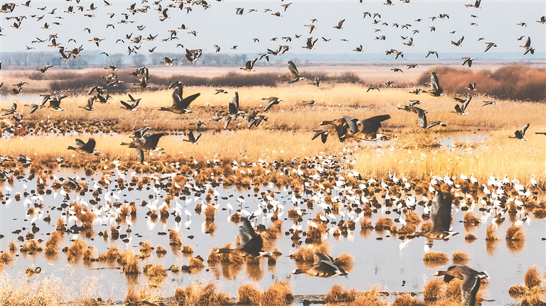本報訊(馬淑芬 記者潘宏宇)6日一早,剛下過第一場雪的寶清縣,數(shù)千只東方白鸛在此“集結(jié)”,飛翔在湛藍的天空和白雪覆蓋的大地之上,勾勒出一幅美麗的圖景,為冬日的寶清增添了一抹別樣的生機與活力。