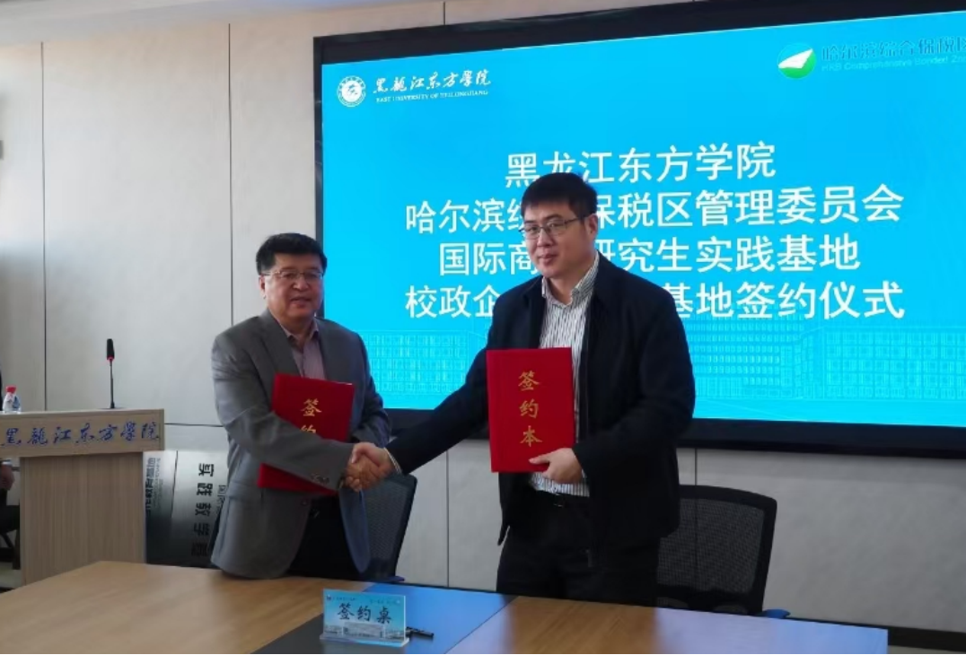 黑龍江經(jīng)濟網(wǎng)訊(記者李凌雪)11月20日,哈爾濱綜合保稅區(qū)與黑龍江東方學(xué)院舉行校政企產(chǎn)教研發(fā)展戰(zhàn)略合作協(xié)議簽約授牌儀式。哈爾濱綜合保稅區(qū)副主任張旭與黑龍江東方學(xué)院副校長程延江共同為國際商務(wù)研究生實踐基地、校企合作教育基地授牌并簽署合作協(xié)議。