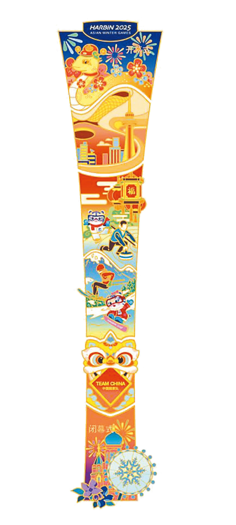 工作人員介紹,目前銷售最火爆的就是形似火炬的徽章,它是中國國家隊聯(lián)名徽章胸針套裝,設(shè)計靈感源自亞冬會火炬的輪廓,套裝內(nèi)包含六段精致的徽章,通過巧妙的拼接,呈現(xiàn)出亞冬會盛況。