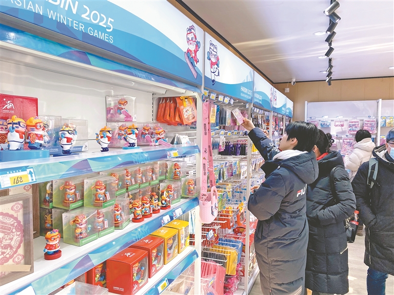 本報訊(記者郭俊峰)亞冬會即將開幕,位于哈爾濱國際會展體育中心亞冬會主媒體中心一層的特許商品零售店內(nèi)人聲鼎沸,亞冬會吉祥物玩偶、冰雪運動徽章、琉璃冰壺等300余款特許商品引發(fā)搶購熱潮?;鹁嫦盗邢蘖堪婕o(jì)念品、亞冬會徽章、“濱濱”“妮妮”火炬?zhèn)鬟f紀(jì)念冰箱貼等極具收藏價值的限量版特許商品更是熱銷貨。