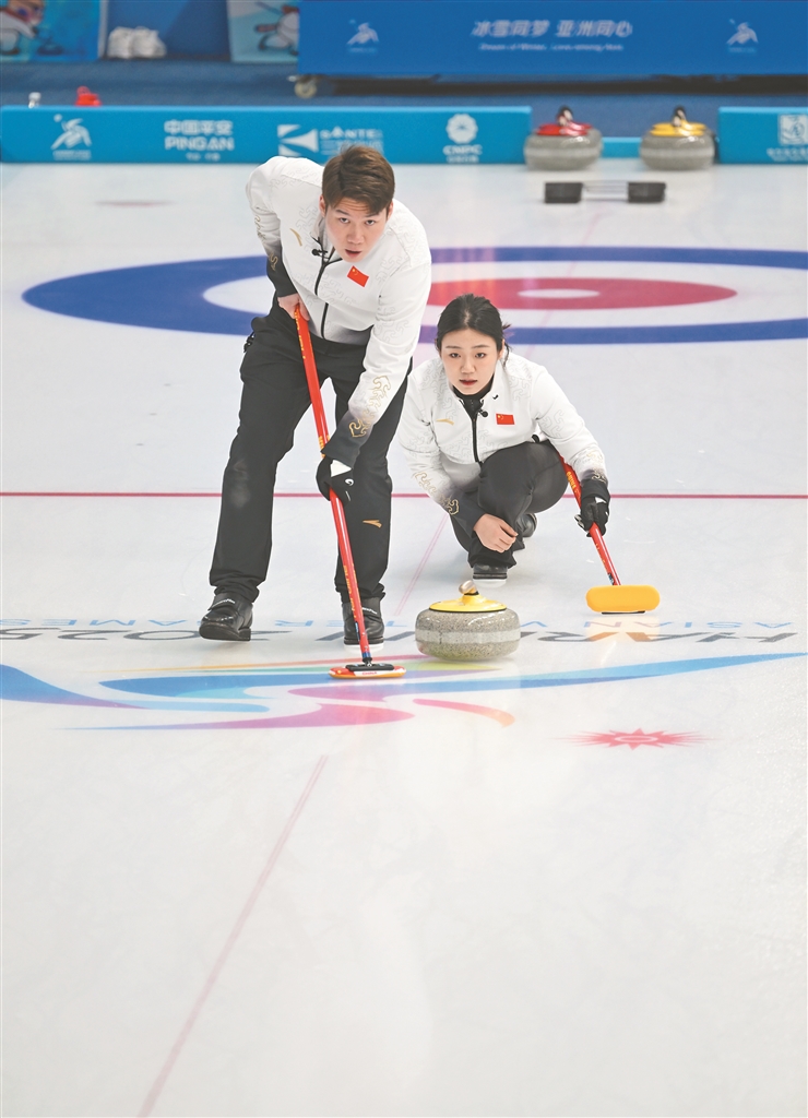 本報6日訊(記者王志強)6日,在冰壺混雙循環(huán)賽最后一輪比賽中,中國隊王智宇/韓雨組合以10比1大比分戰(zhàn)勝卡塔爾隊,以戰(zhàn)績排名小組第一,率先進(jìn)入半決賽。
