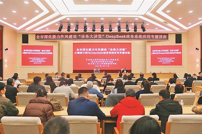 本報訊(記者 趙一諾)為加快提升機關(guān)干部數(shù)字素養(yǎng)與智能技術(shù)應用能力,助力政務工作智能化轉(zhuǎn)型升級,近日,哈爾濱市直機關(guān)工委、哈爾濱市科協(xié)、哈爾濱工業(yè)大學繼續(xù)教育學院聯(lián)合舉辦哈爾濱市深化能力作風建設“業(yè)務大講堂”——AI模型介紹與DeepSeek政務系統(tǒng)應用專題講座。哈爾濱市直機關(guān)和部分區(qū)縣共200余名機關(guān)干部參加學習。