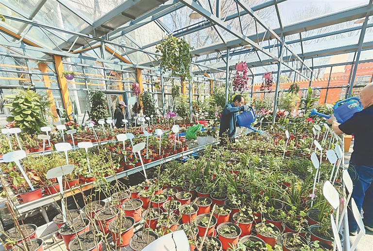 3月31日,黑龍江中醫(yī)藥大學(xué)校園內(nèi),眾多市民在寬敞明亮的溫室里參觀(guān)。