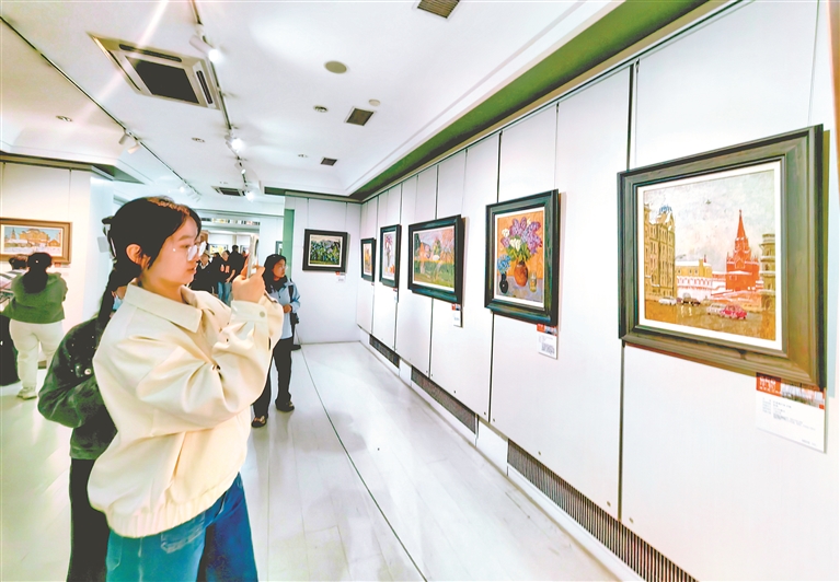 近日,哈爾濱市道外區(qū)南直路上的哈藥六版畫博物館內(nèi),眾多市民、游客在參觀。在這處被譽(yù)為“東北盧浮宮”的博物館里,展出了許多精美的版畫、油畫。館內(nèi)還可以看到巴洛克浮雕、水晶大吊燈、羅馬圓柱等。人們一邊參觀,一邊拍攝照片、視頻發(fā)到朋友圈。