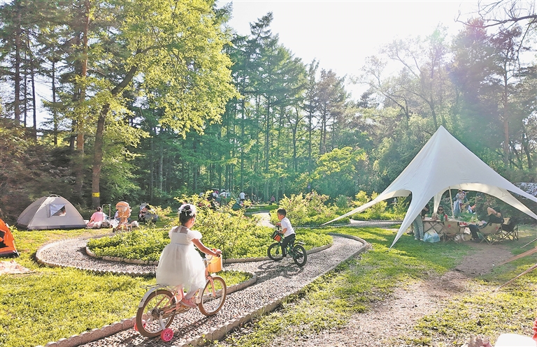 在省森林植物園內(nèi),孩子們在草坪上放風(fēng)箏、吹泡泡、追逐嬉戲,盡情享受假日好時光。