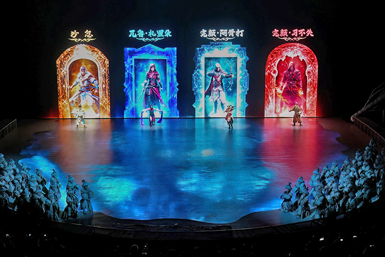 2.0版本《王的戰(zhàn)車》以北方部落的古老傳說為藍(lán)本,將傳統(tǒng)技藝與現(xiàn)代科技巧妙融合,既保留了傳統(tǒng)雜技的力量與驚險,又通過全息投影技術(shù)、天幕+地屏等科技手段賦予其全新的藝術(shù)表達(dá)。