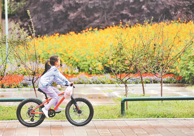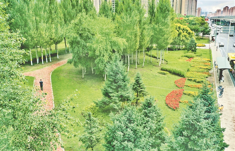 3日,哈爾濱市道里區(qū)陽明灘大道附近,行人從“口袋公園”旁走過。今年,當(dāng)?shù)匦陆硕鄠€(gè)“口袋公園”,占地面積數(shù)萬平方米。公園里,樹木生長(zhǎng)茂盛,鮮花爭(zhēng)奇斗艷,小道從園中穿過,道旁設(shè)有座椅、健身器材等。許多附近居民到這里休閑、賞景。