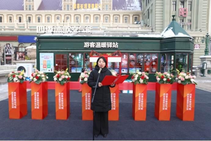 共青團哈爾濱市委副書記徐翎致辭時指出,哈爾濱以“世界冰雪旅游卓越城市”之姿驚艷全球,這一火熱盛況背后,也讓四季沐歌集團連續(xù)三年傾力打造游客溫暖驛站的堅守與付出,收獲了高度肯定,企業(yè)以科技暖意驅(qū)散凜冬嚴寒、用清潔能源護航八方游客、以“雙碳”使命點亮城市溫度的責任擔當更贏得社會廣泛贊許。她表示,團市委將以游客溫暖驛站為紐帶,廣泛匯聚青春動能和社會力量,為驛站建設(shè)添磚加瓦,也真誠呼吁各界持續(xù)關(guān)注溫暖驛站發(fā)展、支持哈爾濱青年發(fā)展型城市建設(shè),攜手為冰城高質(zhì)量振興注入青春動能。