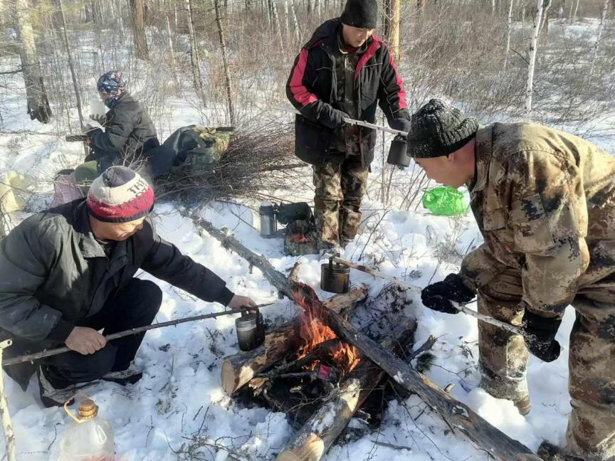 餐風(fēng)飲雪不言苦,苦中作樂顯擔(dān)當(dāng)。正午時(shí)分,忙碌的作業(yè)暫告一段落,林間背風(fēng)處便成了臨時(shí)“餐桌”。職工們聚在一起,圍坐在火堆旁,就著寒風(fēng),分享著熱氣騰騰的盒飯。沒有舒適的就餐環(huán)境,只有白雪皚皚的林海作伴;沒有豐盛的佳肴,只有簡單的飯菜暖胃暖心。大家邊吃邊聊,交流著當(dāng)天的作業(yè)進(jìn)度,分享著林區(qū)里的新鮮事,爽朗的笑聲回蕩在林間。艱苦的條件絲毫沒有消減大家的干勁,反而凝聚起攻堅(jiān)克難的強(qiáng)大合力,這便是育英林場人獨(dú)有的“苦中作樂”,更是對綠水青山的執(zhí)著堅(jiān)守。