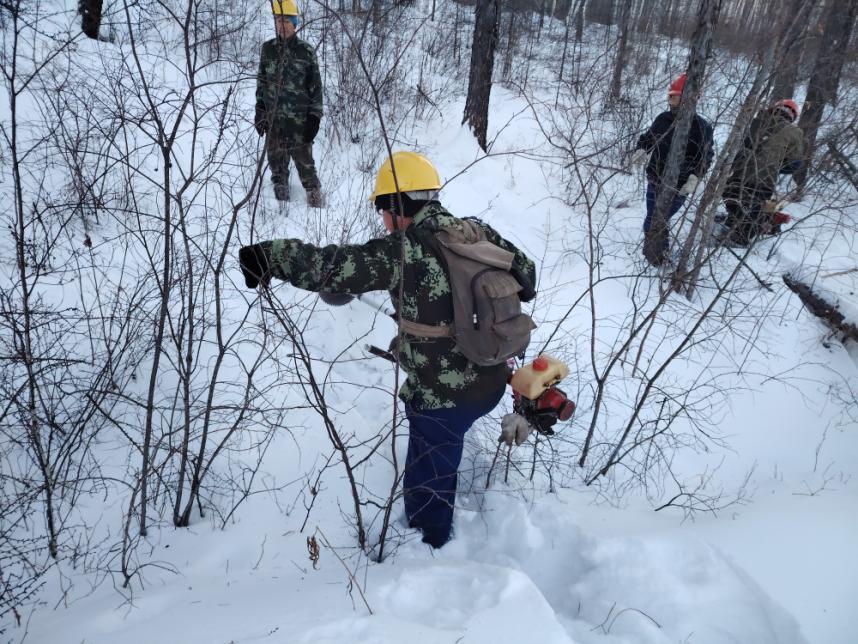 規(guī)范操作不松懈,筑牢安全“防護(hù)墻”。在各營林作業(yè)現(xiàn)場,寒風(fēng)凜冽卻擋不住職工們的工作熱情。大家嚴(yán)格遵守冬季營林作業(yè)規(guī)程,統(tǒng)一佩戴安全帽穿梭在林間,有條不紊地開展林木修枝、病腐木清理、林地?fù)嵊裙ぷ?。油鋸手?yán)格執(zhí)行“先檢查、再啟動(dòng)、穩(wěn)操作”的流程,精準(zhǔn)把控作業(yè)角度;撫育隊(duì)員踩著厚雪,手持工具對林間枯死木、被壓木及對目的樹種生長存在影響的進(jìn)行有序清理、歸堆。從器械檢查到流程落實(shí),每一個(gè)環(huán)節(jié)都嚴(yán)謹(jǐn)規(guī)范,安全帽上的反光條在皚皚白雪中格外醒目,成為林海間一道守護(hù)安全的風(fēng)景線。